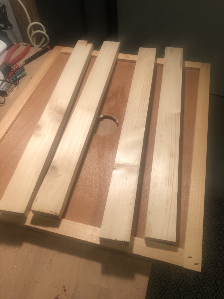 Prendre de la hauteur Publié le 25/01/2020 par Philippe Blanchard — Laissez une réponse Afin de pouvoir ajouter des pains de sucre candy et fermer le toit correctement, j’ai confectionné un support en bois à insérer entre plateau et le toit.