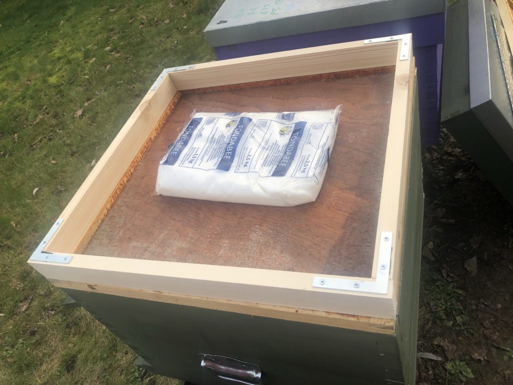 Les 6 ruches se sont vu ajouté un pain de 2,5kg de sucre candy.