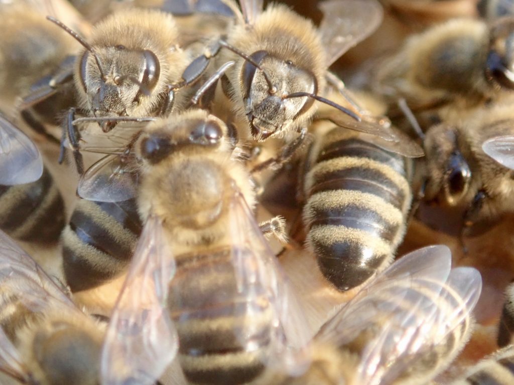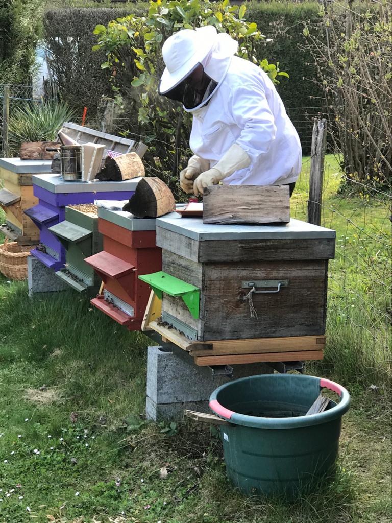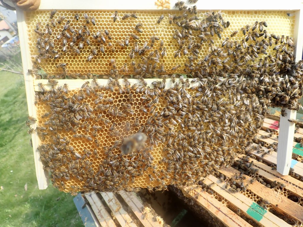 Avec des températures qui dépassent les 20 degrés et multiples arbres en fleurs, ainsi qu’un champ de colza pas loin, les abeilles s’en donnent à coeur joie.