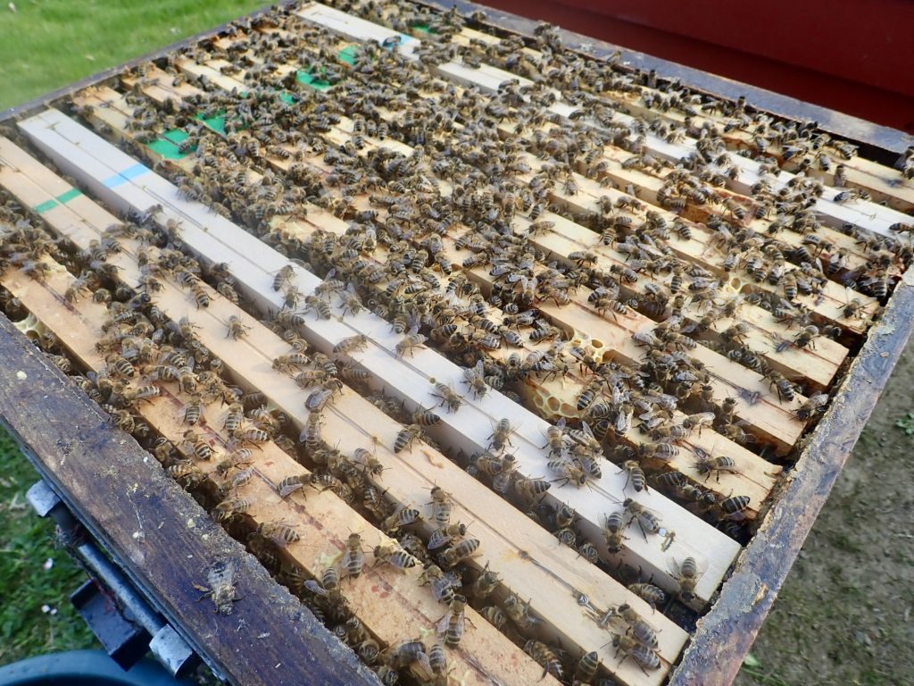 Les 3 autres ruches ne sont pas encore assez forte pour que je mette une hausse. Il faut penser à remplacer la reine de la ruche 2 car les abeilles sont agressives.