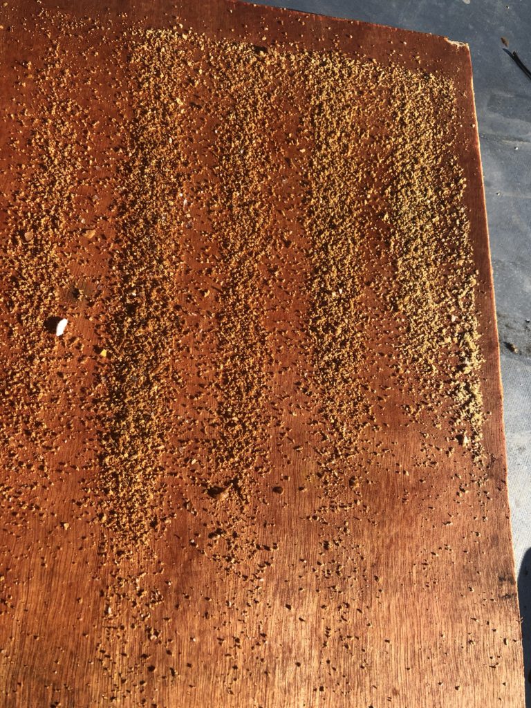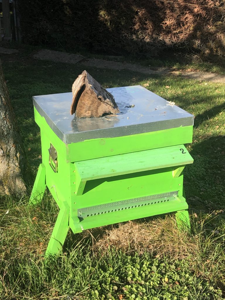 Contrôle du poids, ajout d’une feuille d’alu sous le toit et nettoyage du tiroir. Pas de varoa trouvé (ce qui ne veut pas dire qu’il n’y en as pas….)