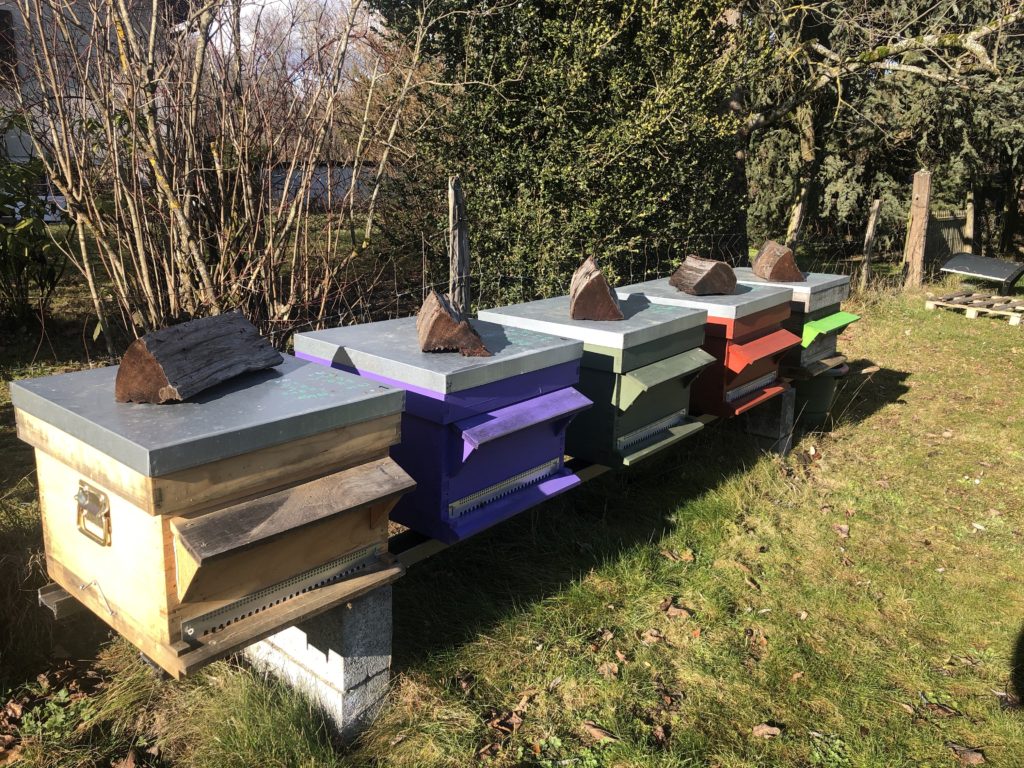 Petite visite non intrusive en ce samedi ensoleillé. Température 8 degrés, quelques abeilles sortent.