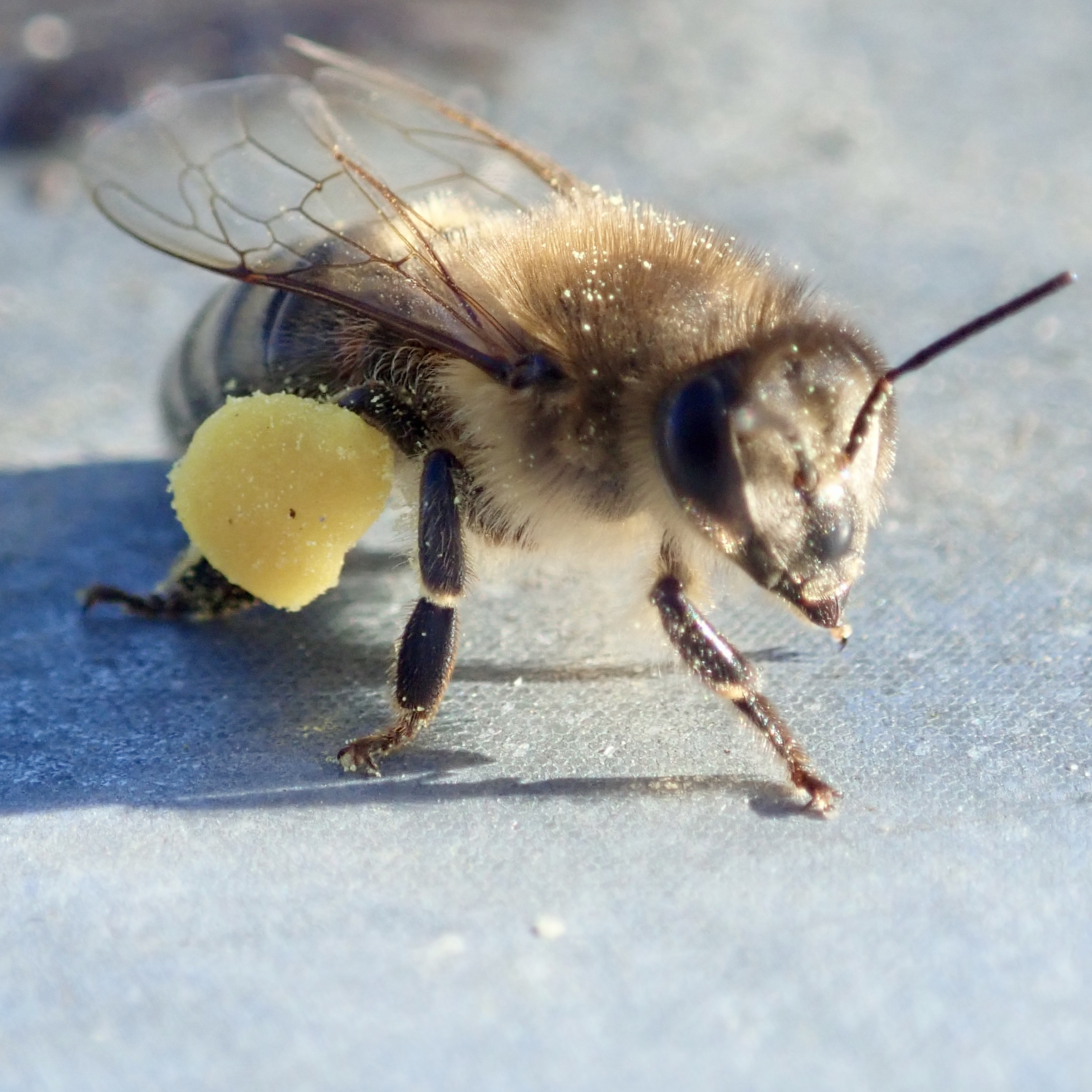 11 degrés, beau soleil, une grande partie des abeilles sortent et rentrent du pollen. J’en profite pour vérifier la quantité de sucre candy en stock ainsi que de peser les ruches.